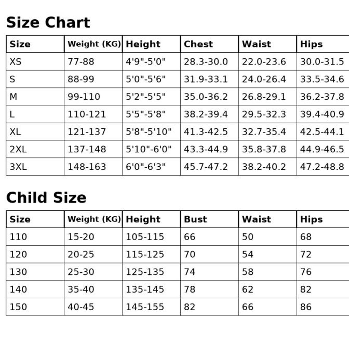 Sizing Chart